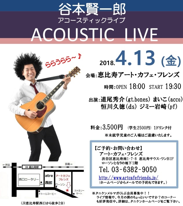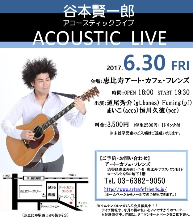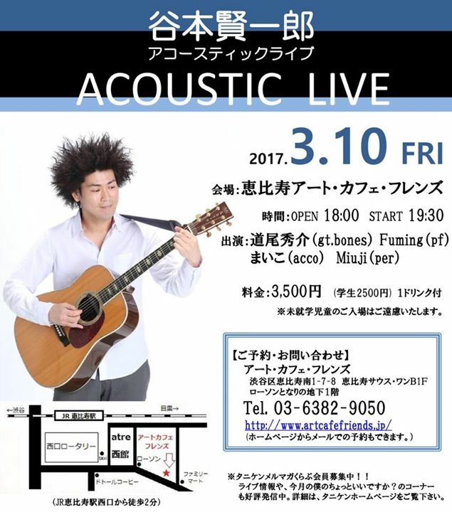 3/10 谷本賢一郎ライブ →ボーンズ、ギター、歌