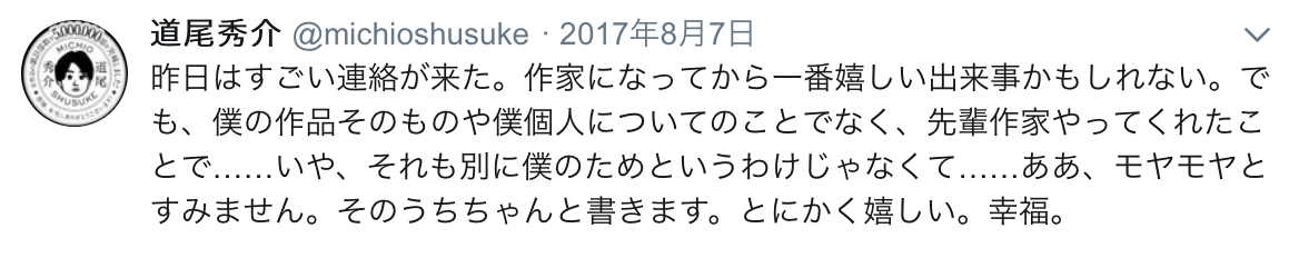何の前触れもなく玄侑さんからのメールが届いたのは、2017年8月6日のことでした。『ソロモンの犬の』続編がとうとう完成し、『竹林精舎』というタイトルで刊行されることになったという連絡でした。はっきりいって僕は腰が抜け、ひと晩中ずっと抜けたままで、翌日ようやく我に返ったあと、まだ全身がシビれたような感覚の中、Twitterにこんなことを書きました。